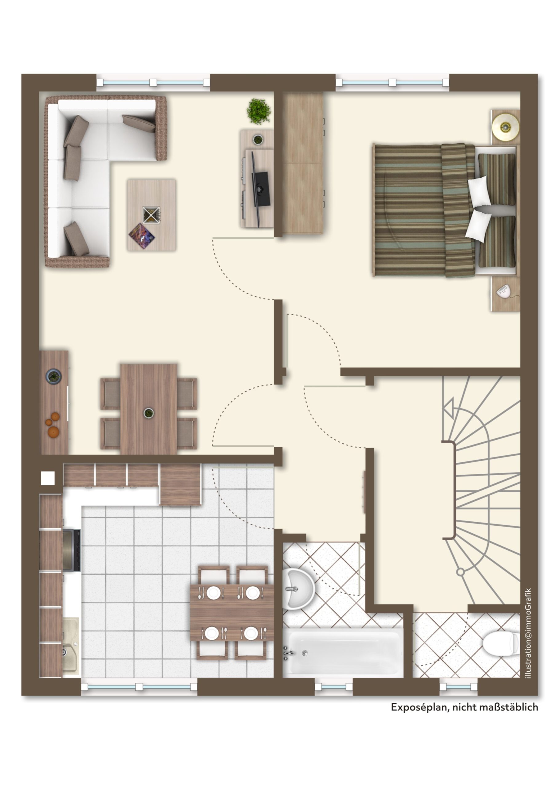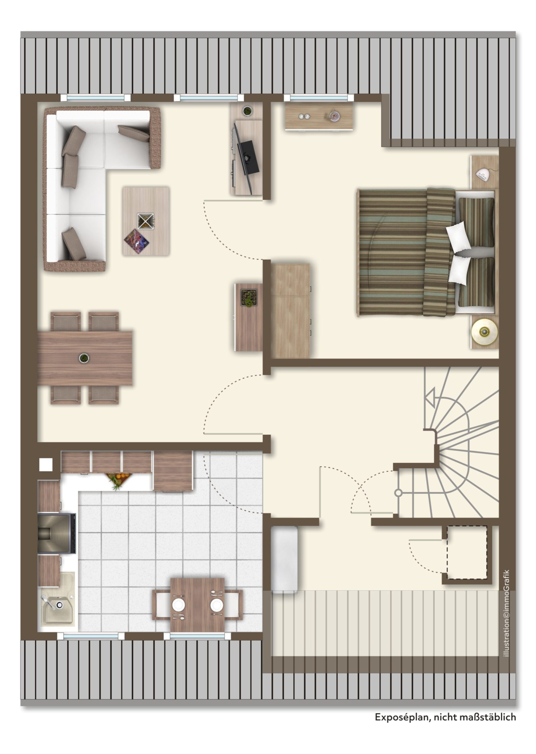 Das Dachgeschoss ist nicht ausgebaut. Ein weiteres Zimmer oder eine schöne Dachgalerie können hier realisiert werden.