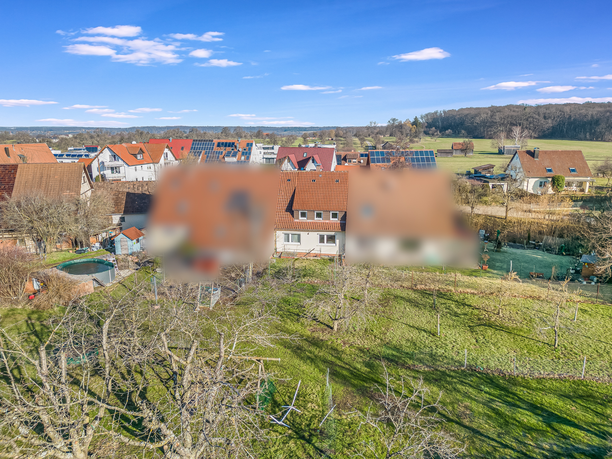 Dieses im Alleinauftrag angebotene Reihenmittelhaus befindet sich in Kirchheim Teck, im schönen Stadtteil Nabern. Es wurde 1951 erbaut und ist aufgrund seiner Grundstücksfläche von 635 m² etwas ganz Besonderes. Es liegt am Rande des Neubaugebiets, eingebettet zwischen dem schönen Gießnaubach und den Streuobstwiesen, mit einem unverbaubaren Blick auf die Burg Teck.
